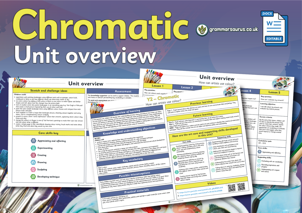 This editable unit overview offers a medium-term plan for Year 2's ‘Chromatic’ art topic. The file includes the following resources:– links