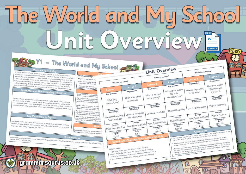 This editable unit overview offers a medium-term plan for Year 1's ‘The world and my school’ topic. The file includes