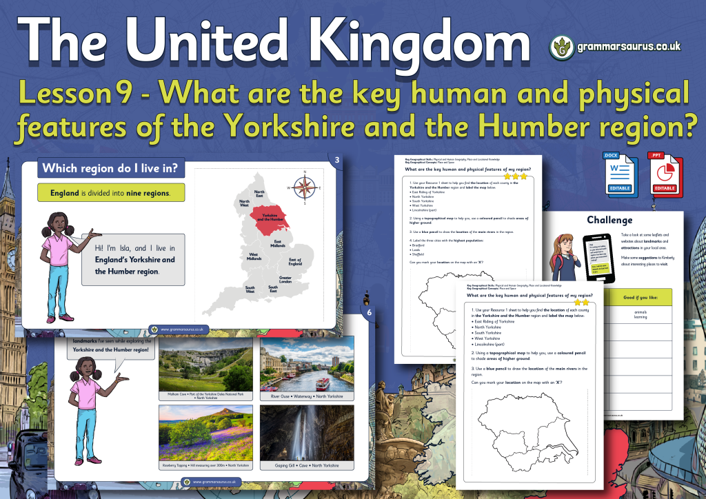 This geography lesson focuses on human features and landmarks found across the UK The file contains the following resources: -