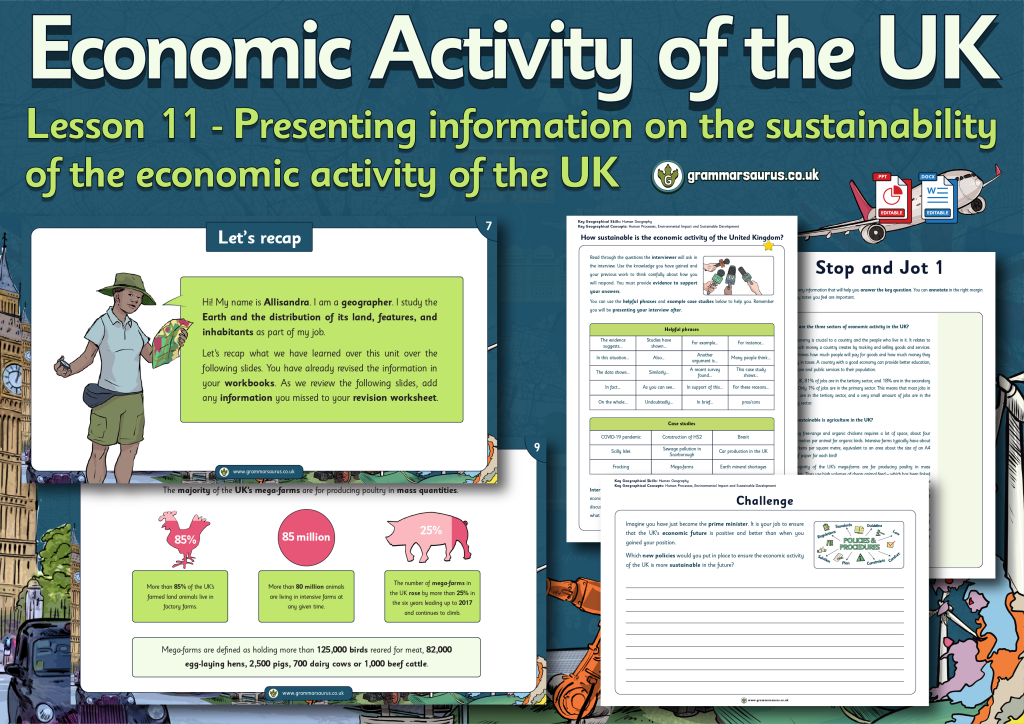 This differentiated geography lesson focuses on presenting data from the study on the sustainability of economic activity in the UK.
