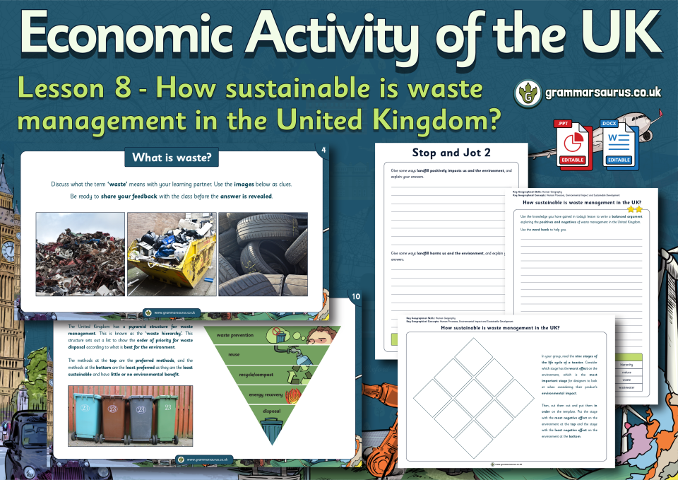 This differentiated geography lesson focuses on the sustainability of the waste management in the United Kingdom, including focus on waste