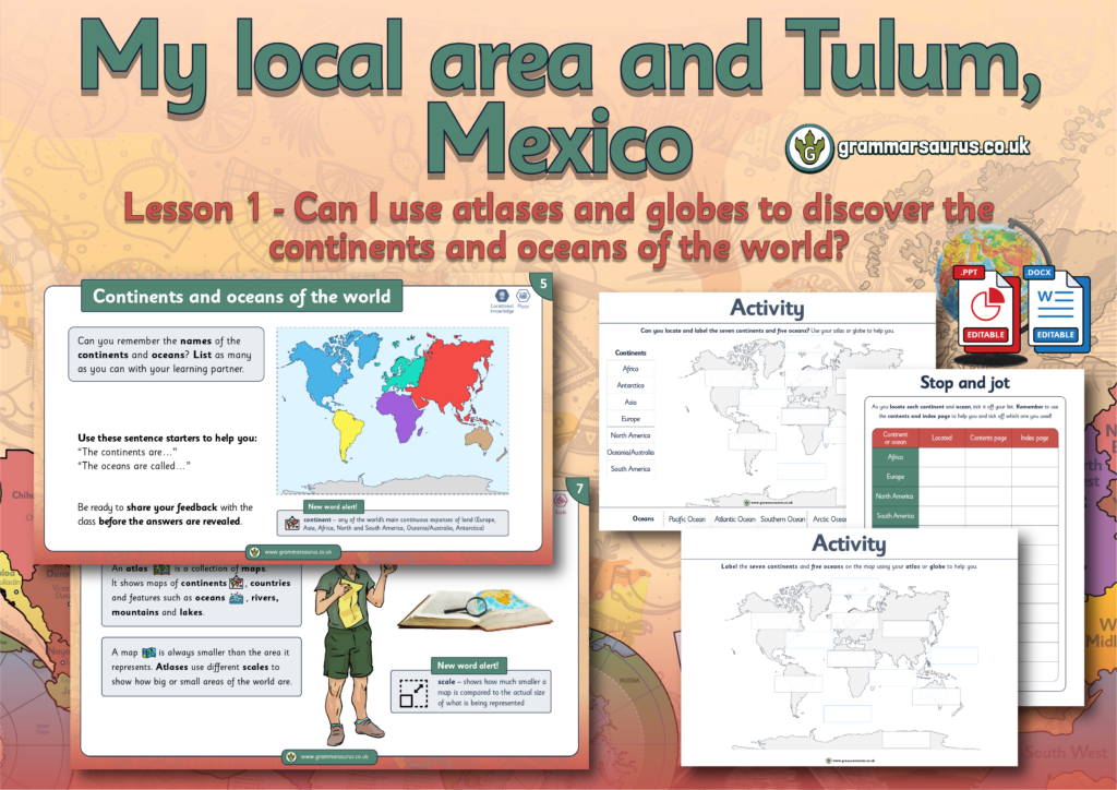 Year 2 Geography – My Local Area and Tulum, Mexico – Can I use atlases and globes to discover the continents and oceans of the world? Lesson 1