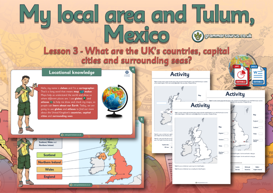 Year 2 Geography – My Local Area and Tulum, Mexico – What are the UK’s countries, capital cities and surrounding seas? Lesson 3