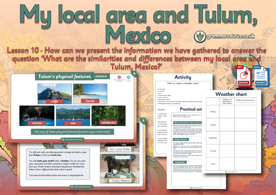 Year 2 Geography – My Local Area and Tulum, Mexico – How can we present the information we have gathered to answer the question ‘What are the similarities and differences between my local area and Tulum, Mexico’? Lesson 10
