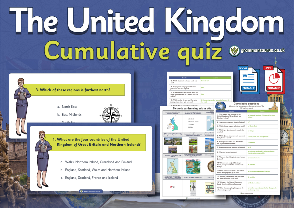 Teachers can use this cumulative quiz and the questions to assess children throughout the Year 3 UK unit. The cumulative