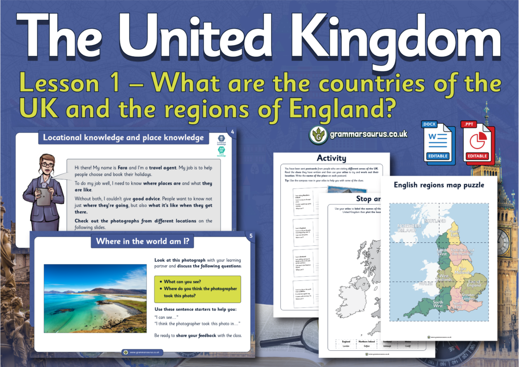 This geography lesson focuses on the countries of the UK and regions of England The file contains the following resources: