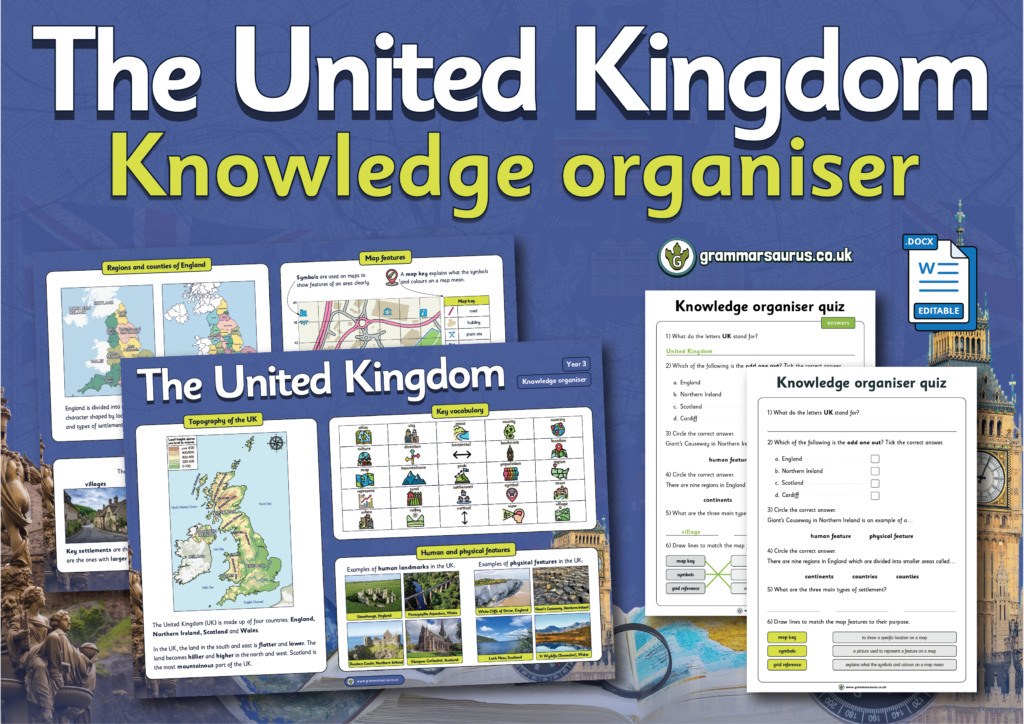 This editable knowledge organiser can be used to support children as they learn about the United Kingdom and its key
