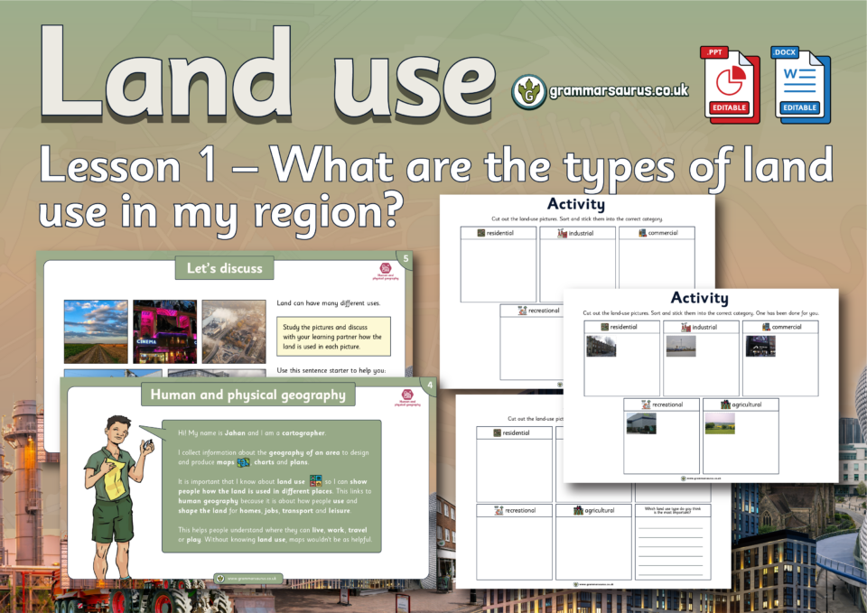 This geography lesson focuses on different types of land use, including types of settlements, and explains how some types of