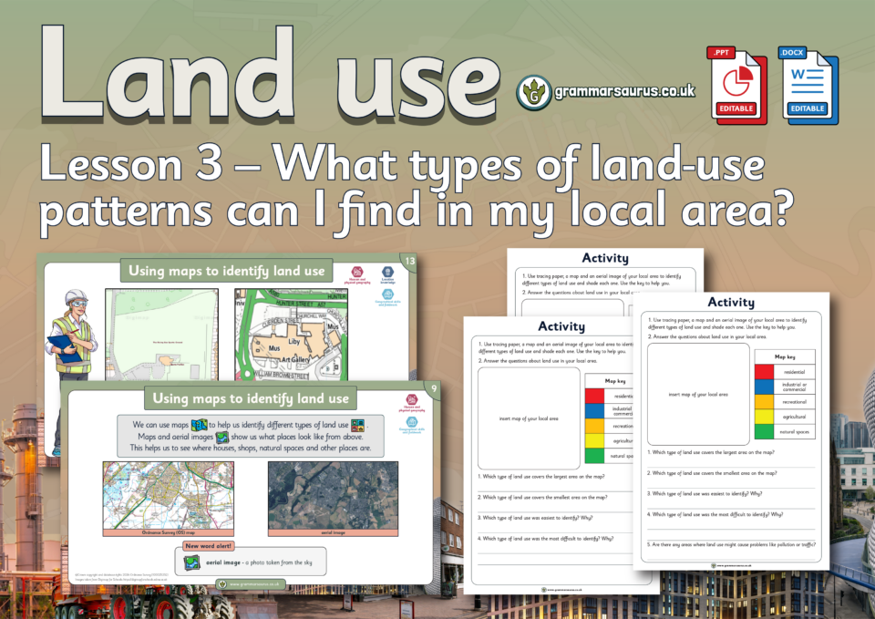 This geography lesson focuses on the different types of land-use patterns in the local area. The file contains the following