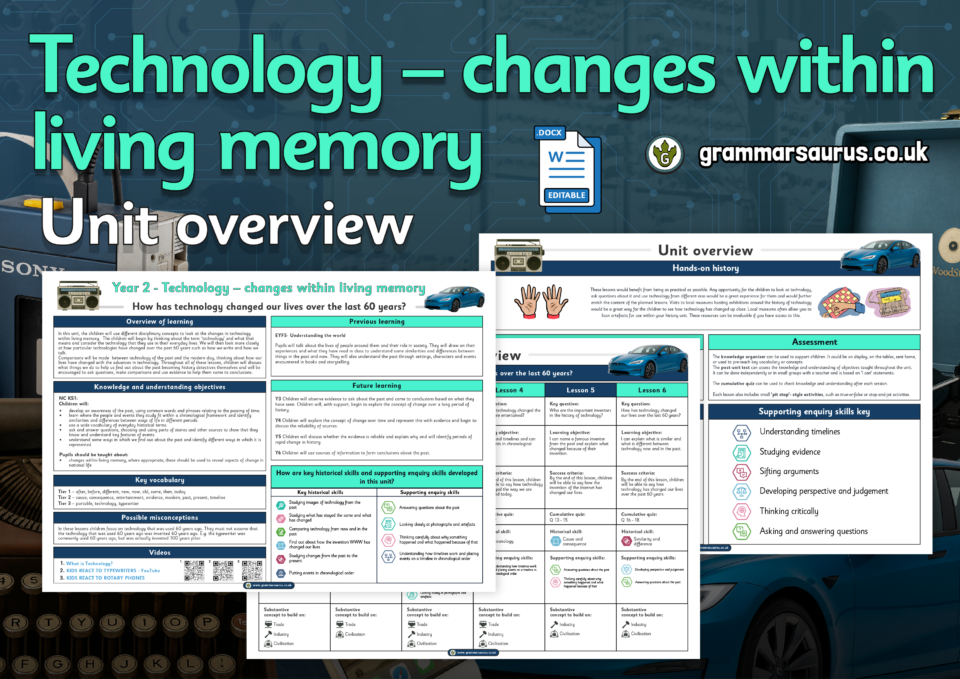 This unit overview supports our lessons for KS1 History - Changes in Technology Updated to the Grammarsaurus Curriculum 2.0...