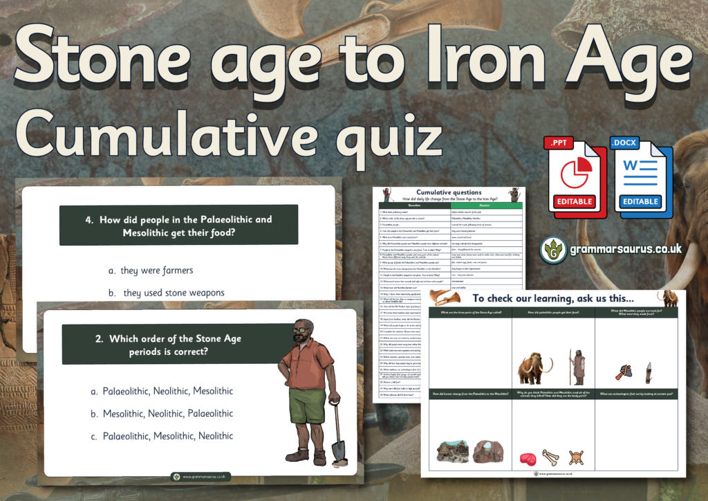 Teachers can use this cumulative quiz and the questions to assess children throughout the Year 3's Stone Age to Iron