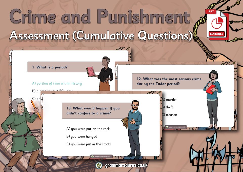Teachers can use this cumulative quiz and the questions to assess children throughout the Year 6 'Crime and Punishment' unit.