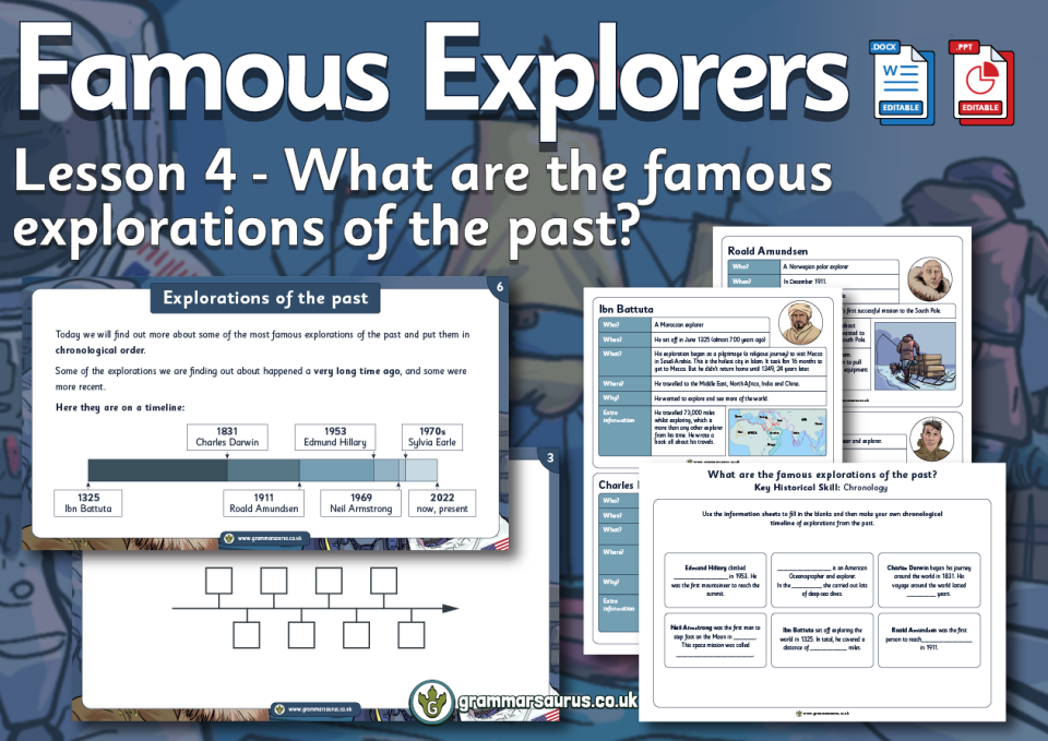 The file contains the following resources: – An editable lesson presentation – An editable lesson plan – Famous Explorer information