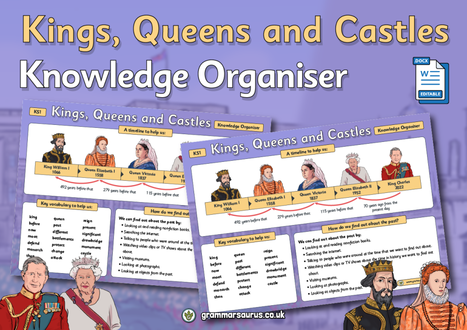 This knowledge organiser complements all lessons for our topic KS1 - Kings, Queens and Castles.... Hello, Downloads are for