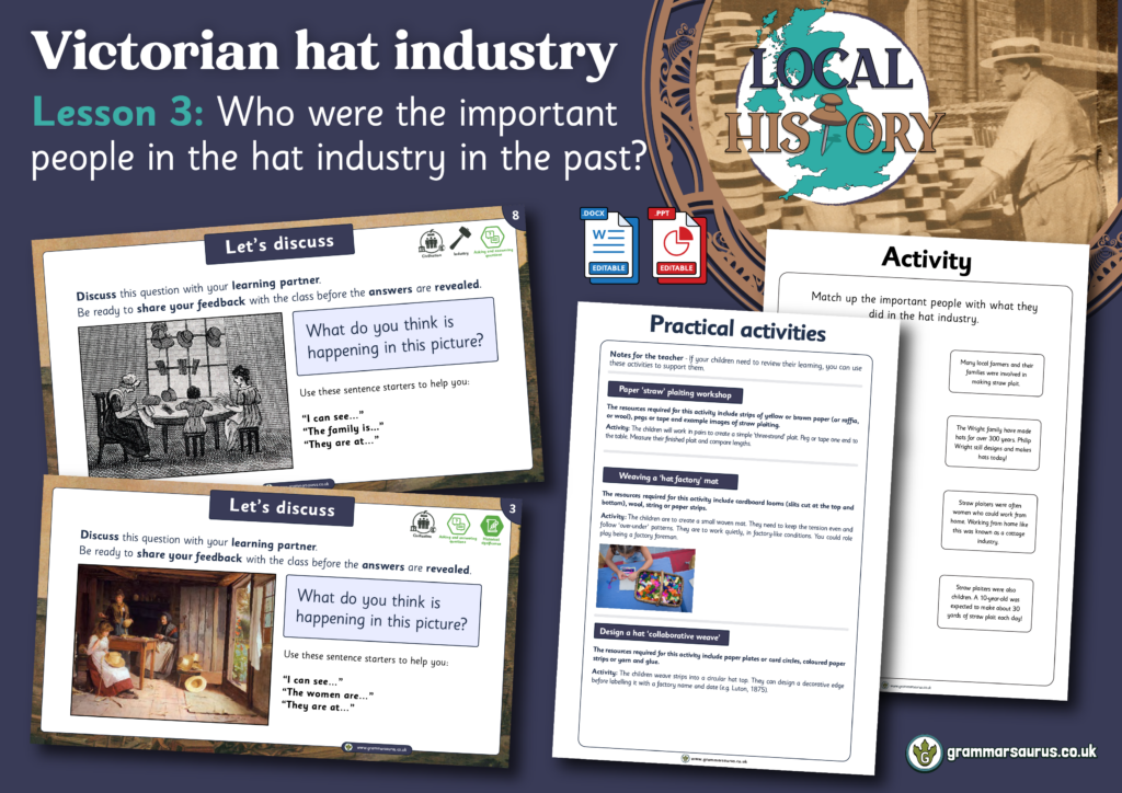 This editable lesson pack focuses on using evidence to explore the Luton hat industry. The file includes the following resources: