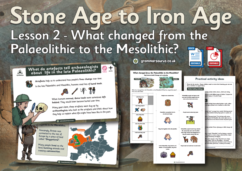 This editable lesson pack focuses on the changes that happened between the Palaeolithic and the Mesolithic. The file includes the
