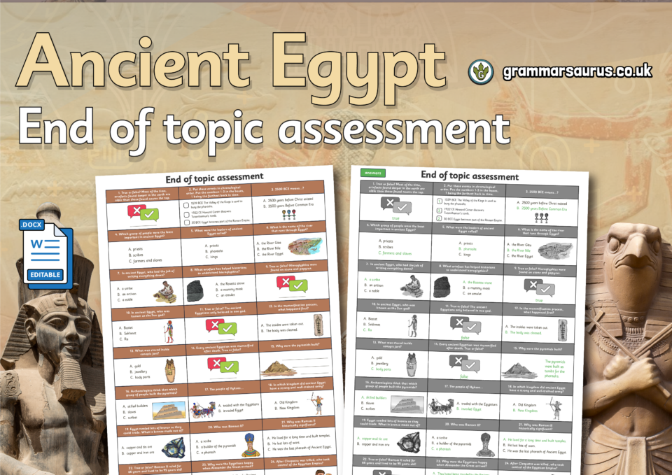 This assessment pack accompanies our Year 3 'Ancient Egypt' unit lessons. The file includes the following resources: -