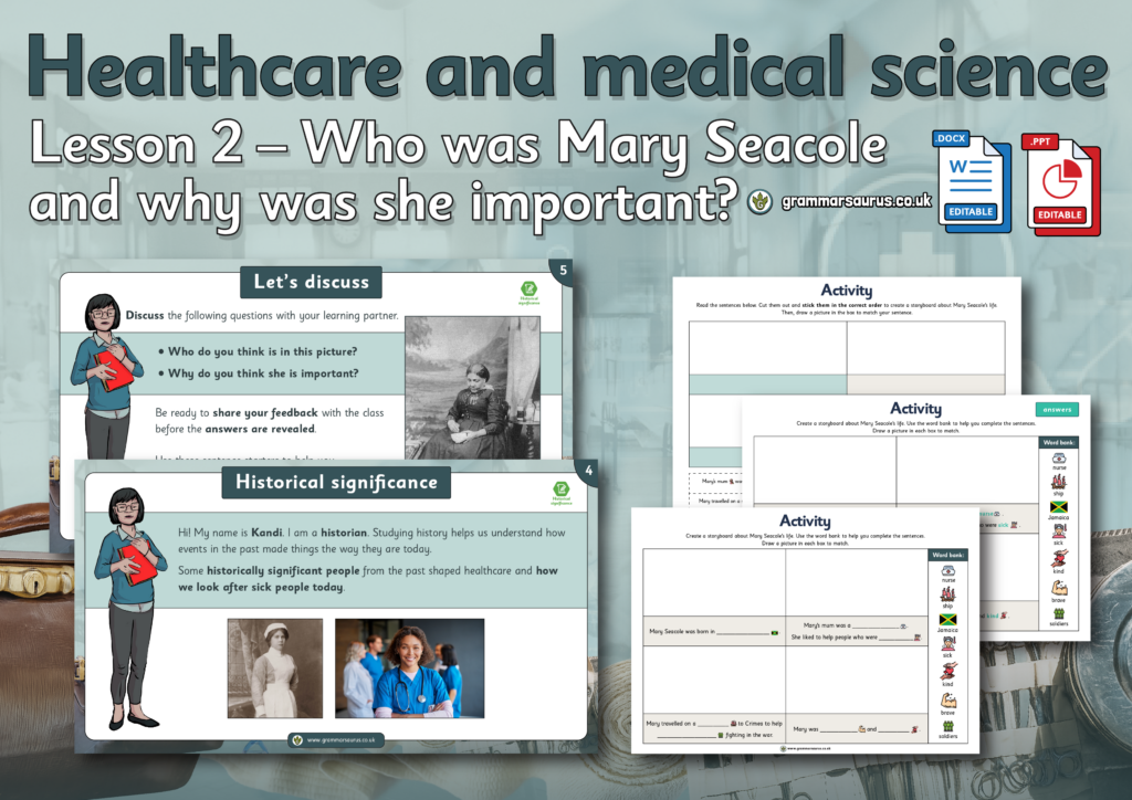 This editable lesson pack focuses on who Mary Seacole was and why she was important. The file includes the following