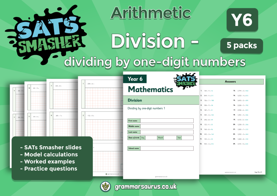 Y6 SATs Smasher (Maths): Arithmetic – Division – dividing by one-digit numbers