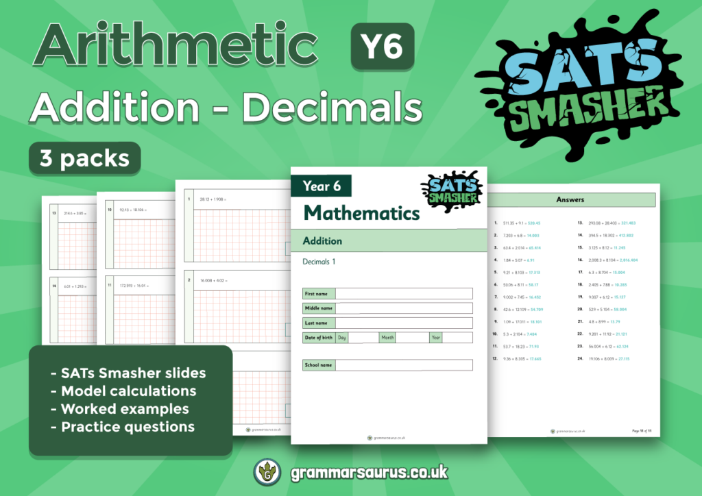 Y6 SATs Smasher (Maths): Arithmetic – Addition – Decimals
