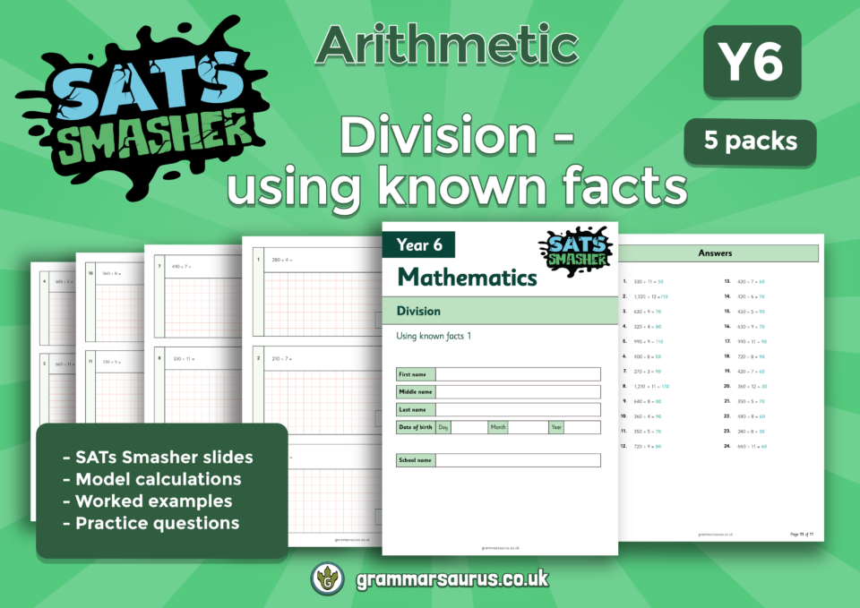 Y6 SATs Smasher (Maths): Arithmetic – Division – using known facts