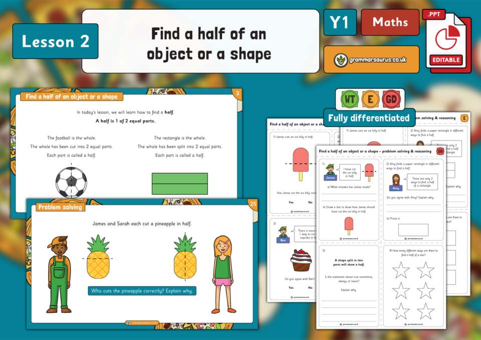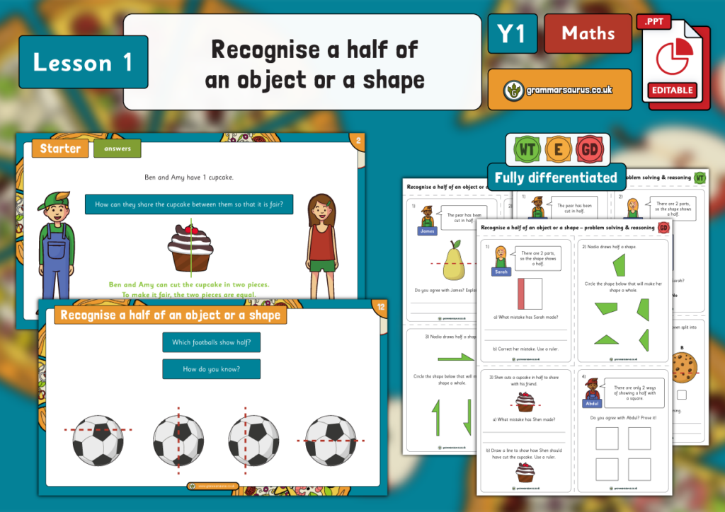 In this lesson, children will learn to recognise a half of an object or a shape. They will be exposed
