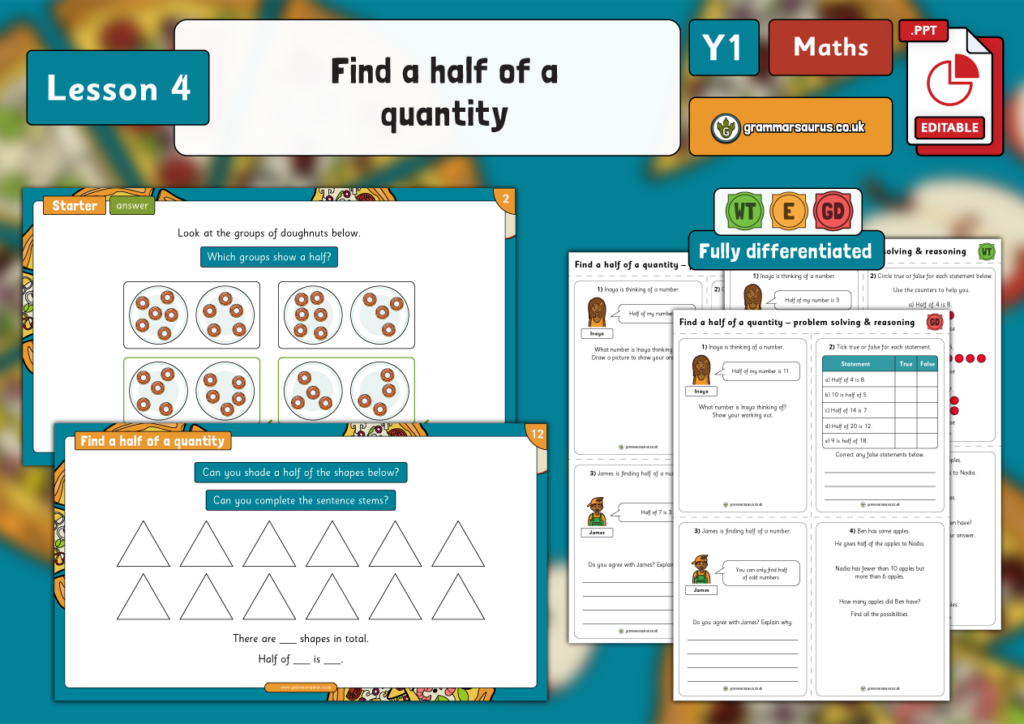 Year 1 Fractions – Find a half of a quantity – Lesson 4