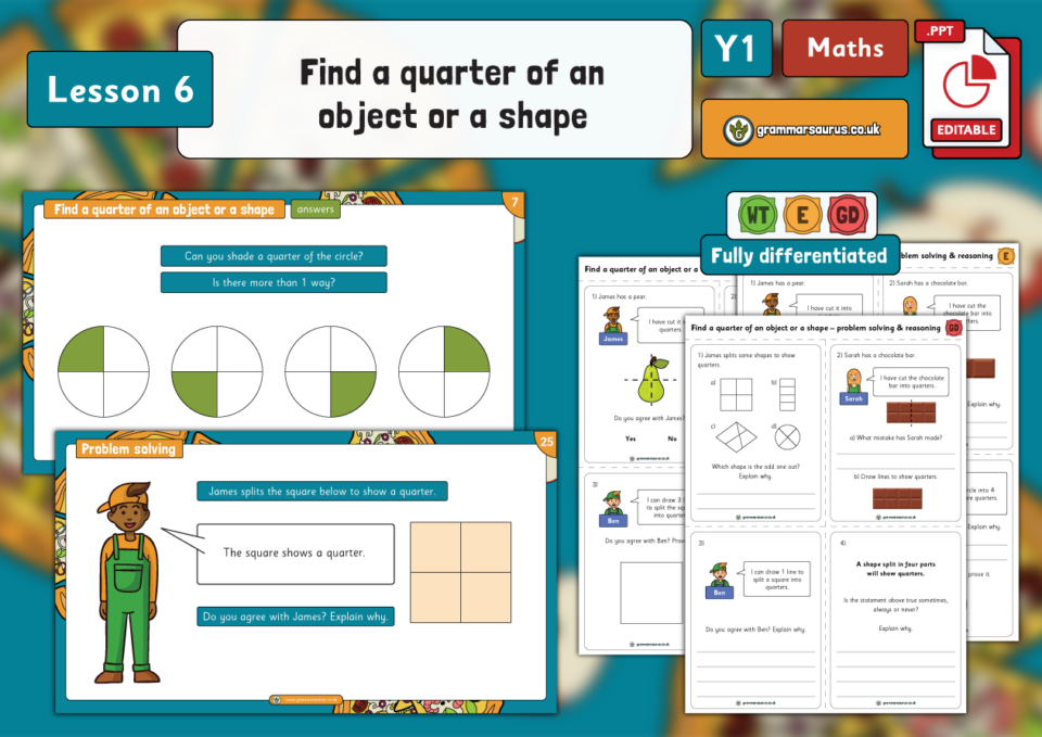 Year 1 Fractions – Find a quarter of an object or a shape – Lesson 6