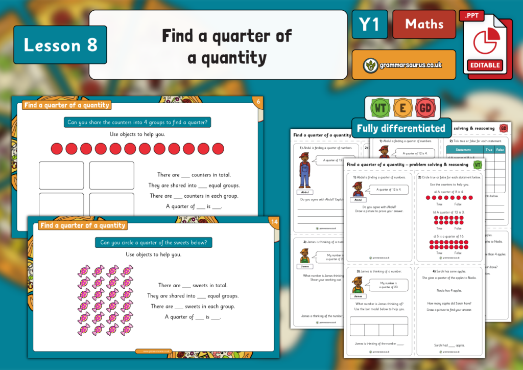 Year 1 Fractions – Find a quarter of a quantity – Lesson 8