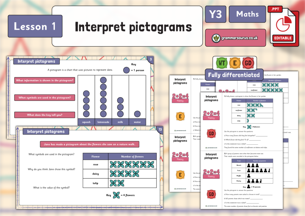 Year 3 Statistics – Interpret pictograms – Lesson 1