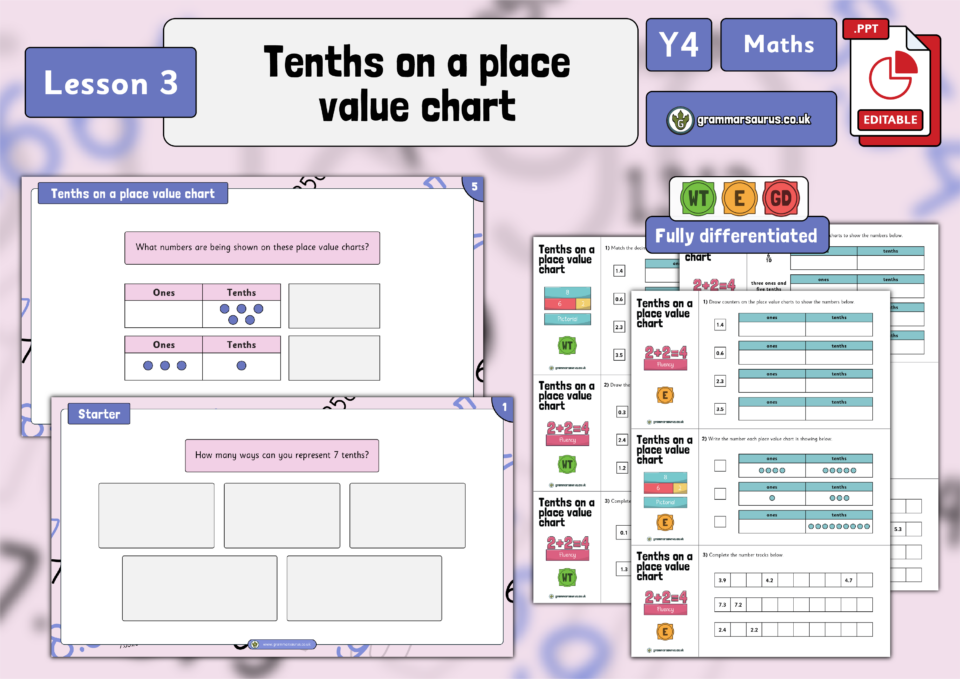 Year 4 Decimals – Tenths on a place value chart – Lesson 3