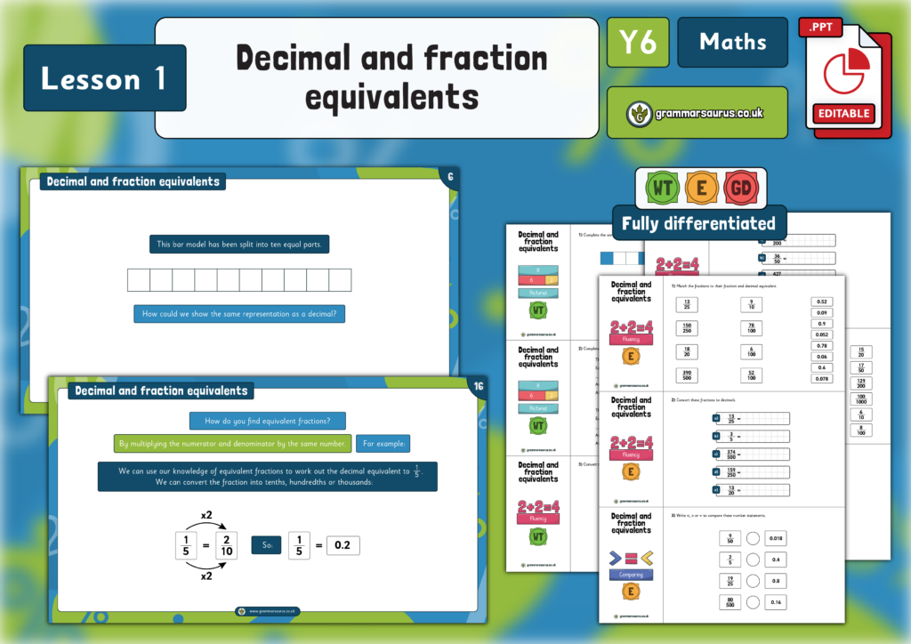 Year 6 Fractions, Decimals and Percentages – Decimal and fraction equivalents – Lesson 1