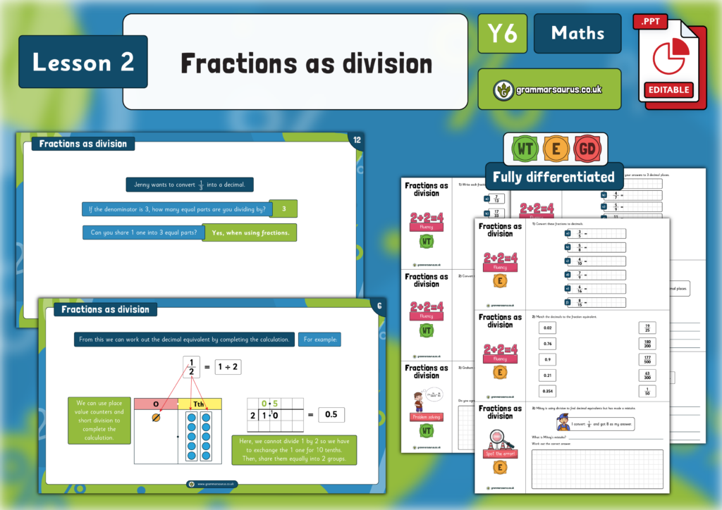 Year 6 Fractions, Decimals and Percentages – Fractions as division – Lesson 2