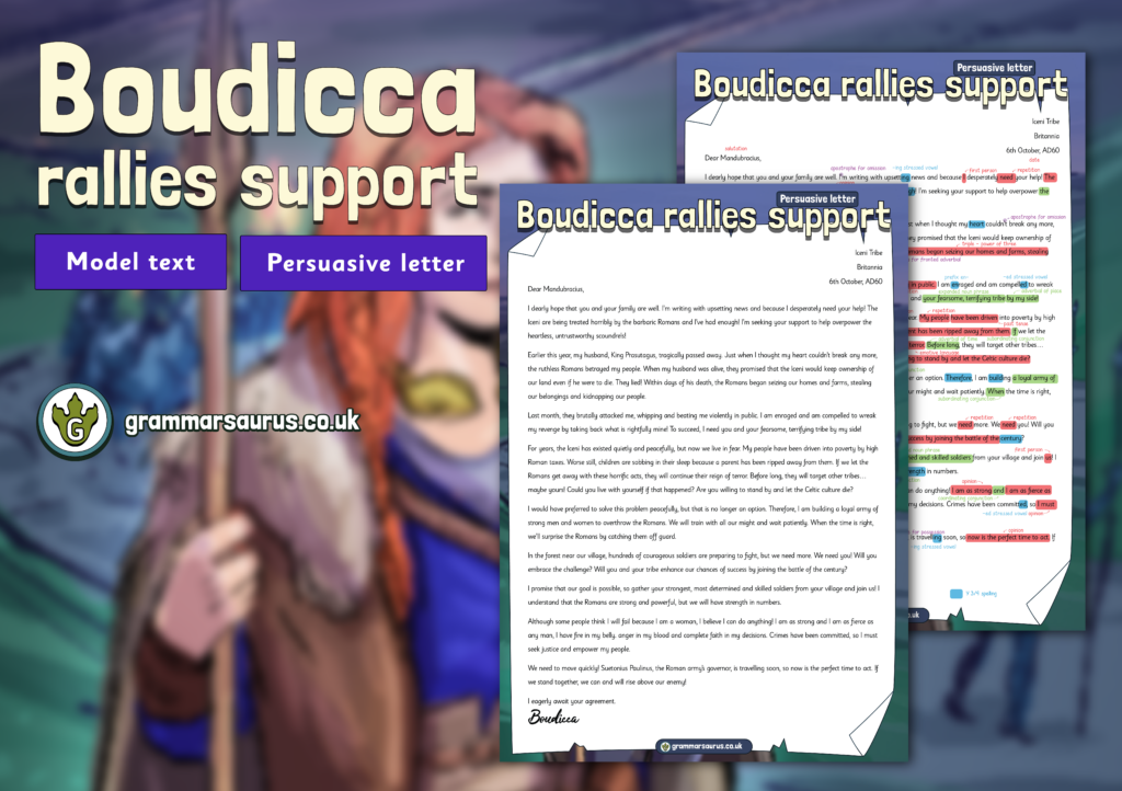 Year 4 Model Text – Persuasive letter – Boudicca rallies support