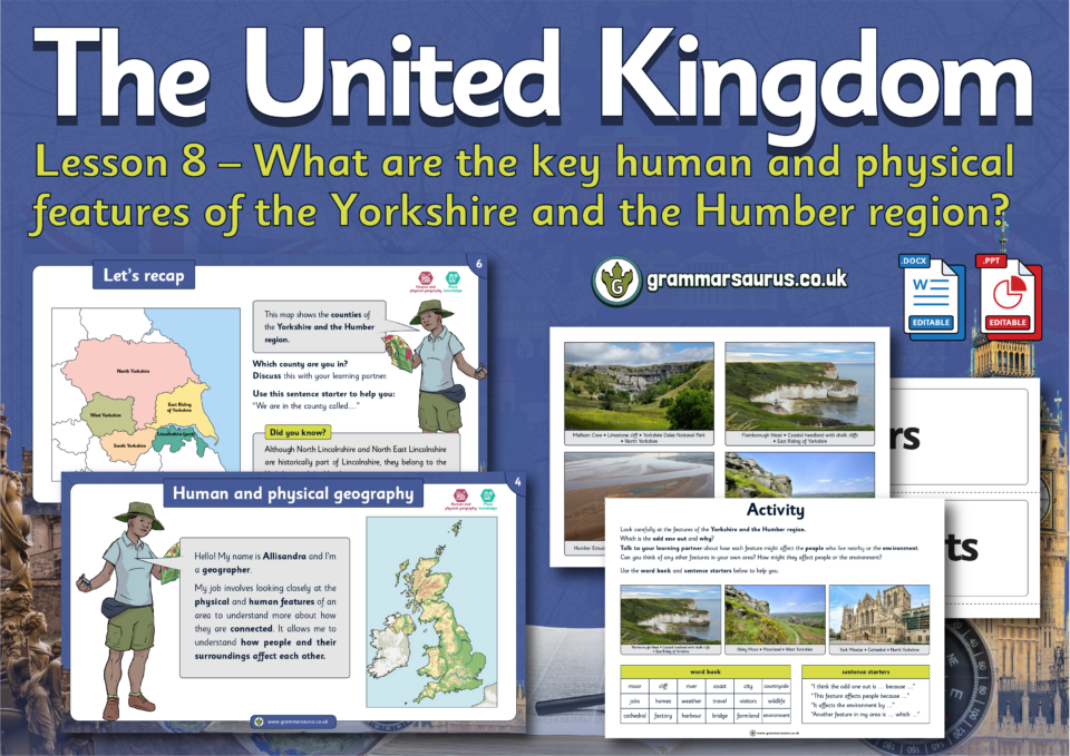 This differentiated geography lesson focuses on the human and physical geographical features of the UK and the Yorkshire and Humber