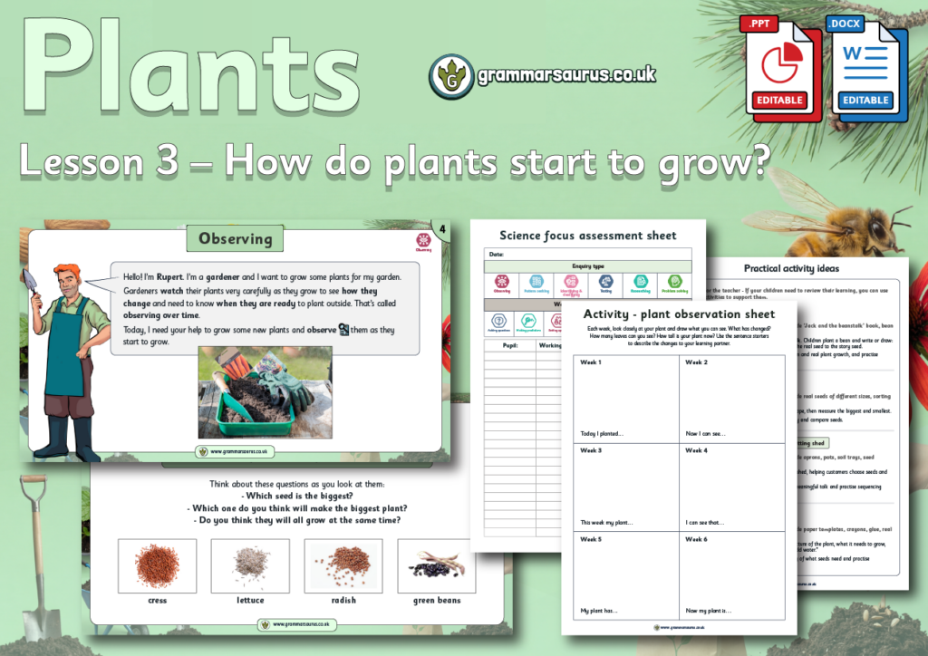 This editable differentiated lesson pack focuses on helping children understand how new plants begin life and what they need to