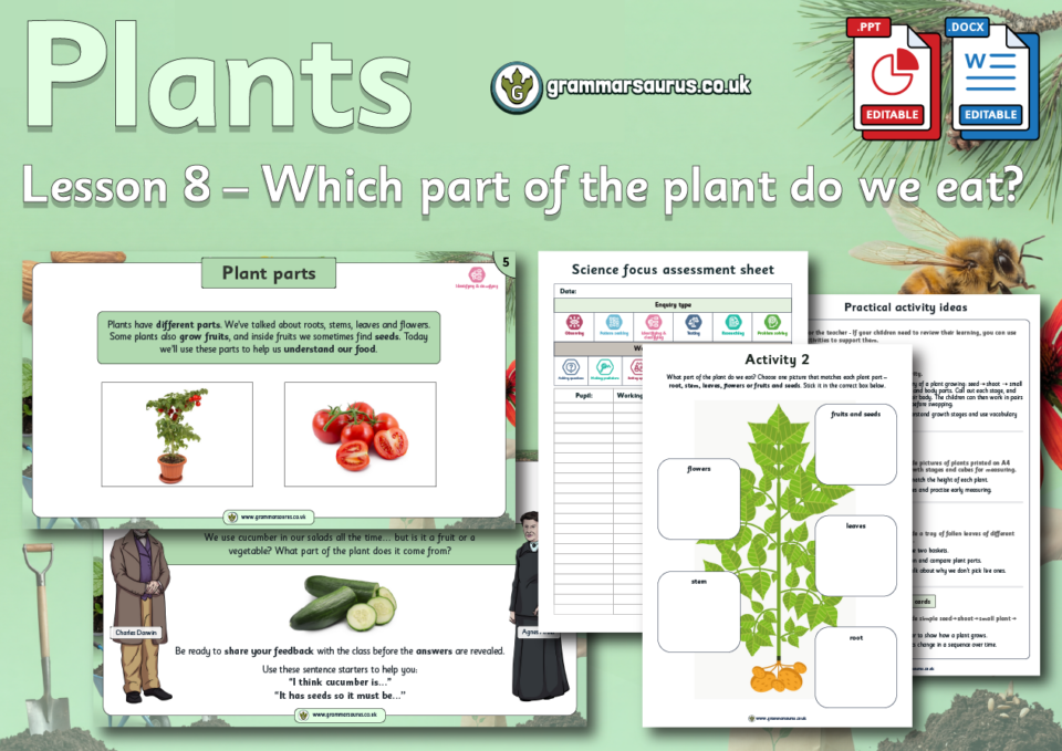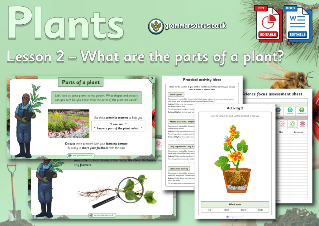 This editable differentiated lesson pack focuses on helping children identify and name the basic parts of a plant. Through close