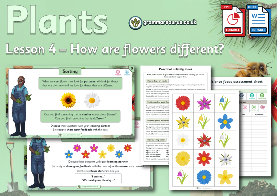 This editable differentiated lesson pack focuses on helping children explore the many ways flowers can look different from one another.
