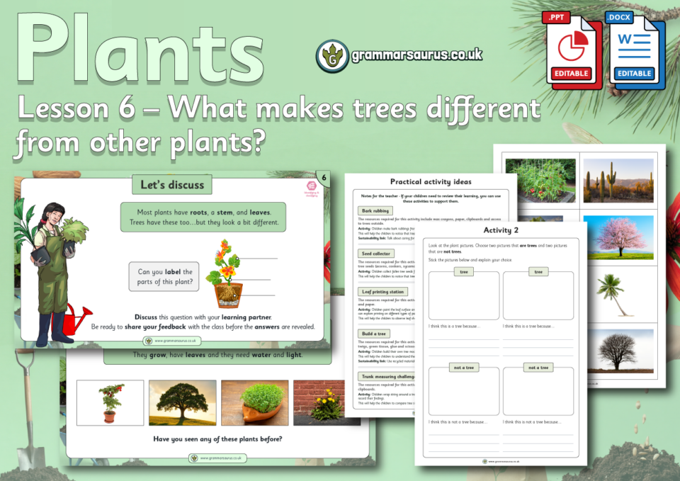 This editable differentiated lesson pack focuses on helping children understand what makes a tree a tree. Through careful observation and