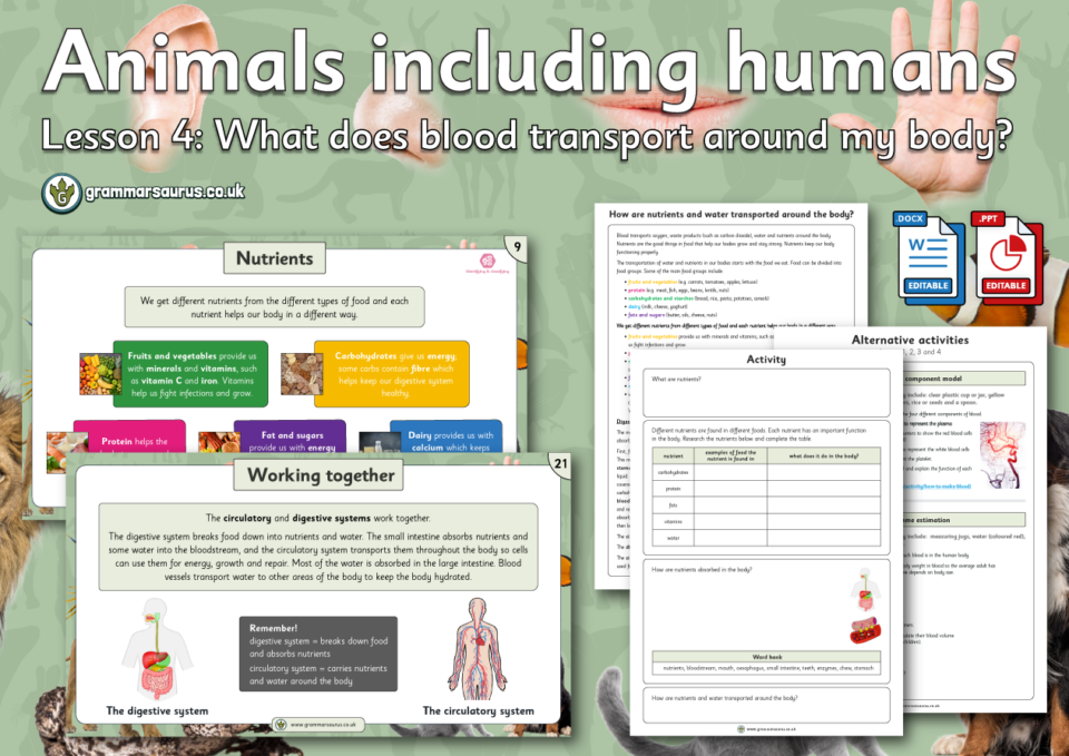 This editable differentiated lesson pack focuses on how water and nutrients are absorbed as part of the digestive system. Children