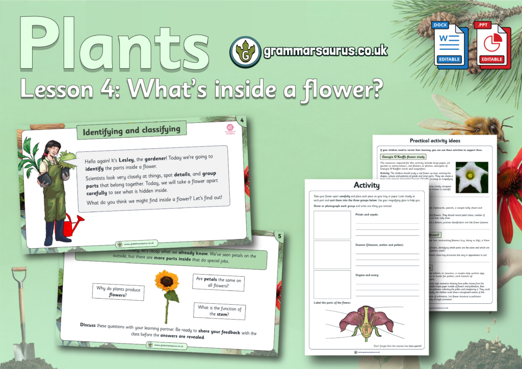 This editable differentiated lesson pack focuses on the parts of a flower. The children identify and name the main internal