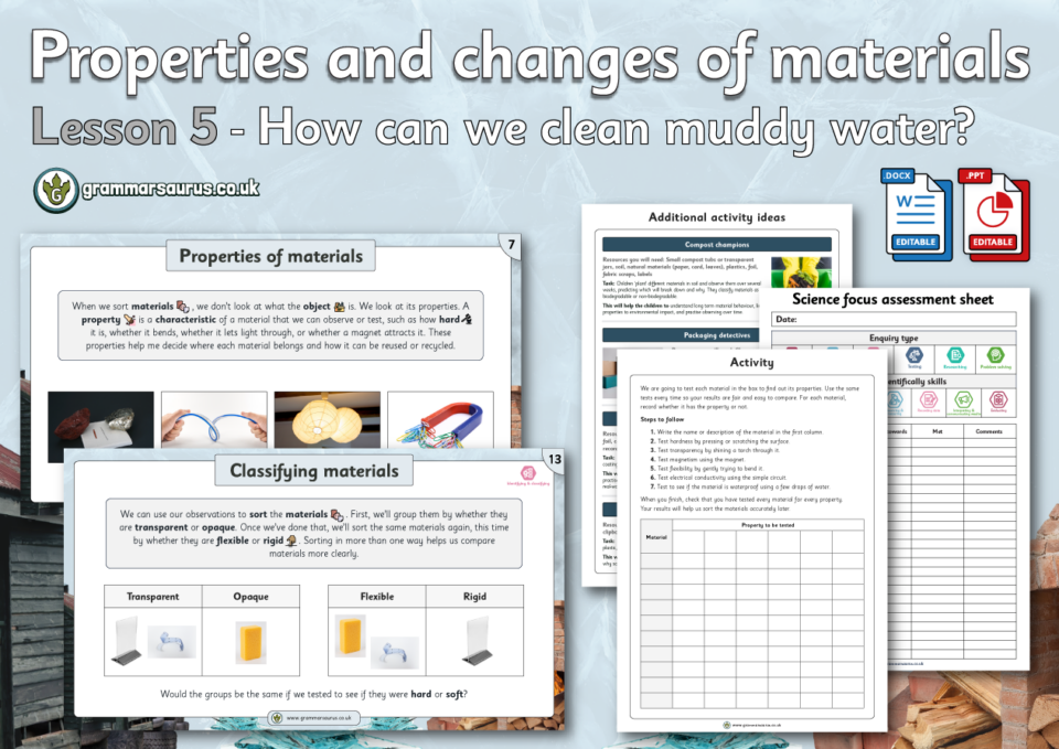 This editable differentiated lesson pack focuses on separating mixtures to make muddy water clearer. Children learn that mixtures can be