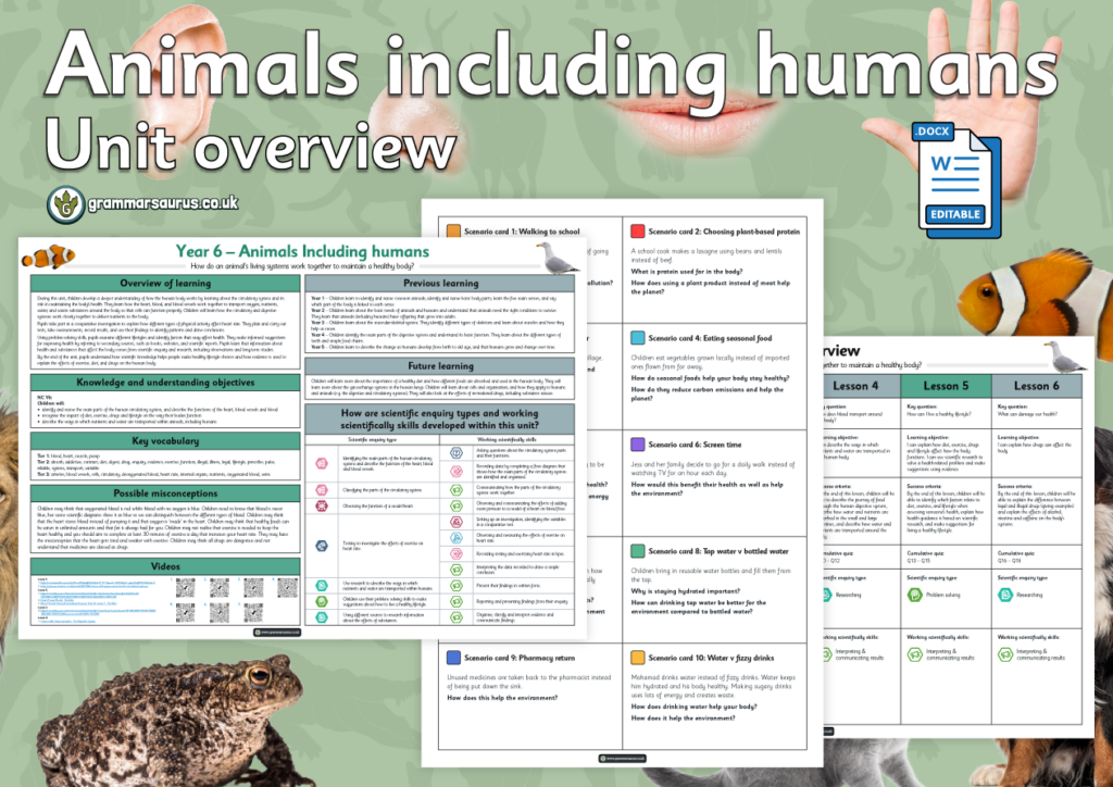 Year 6 Science – Animals including humans – Unit Overview