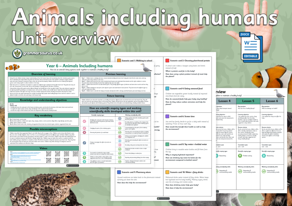 This editable unit overview offers a medium-term plan for Year 6's Animals including humans topic. The file includes the following