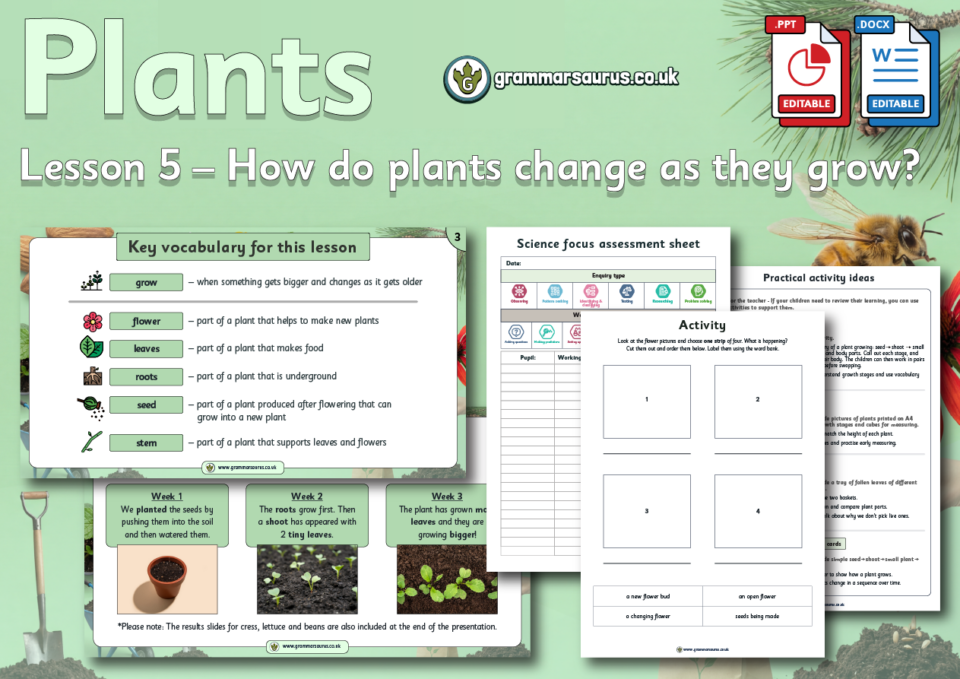 This editable differentiated lesson pack focuses on helping children understand that plants change in clear, recognisable stages as they grow.
