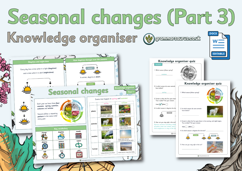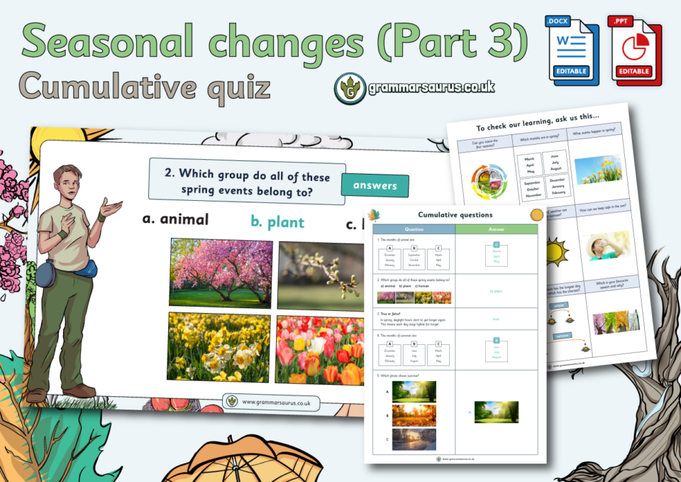 This cumulative quiz is designed to assess children’s understanding throughout the Year 1 Seasonal changes unit. Each question is linked