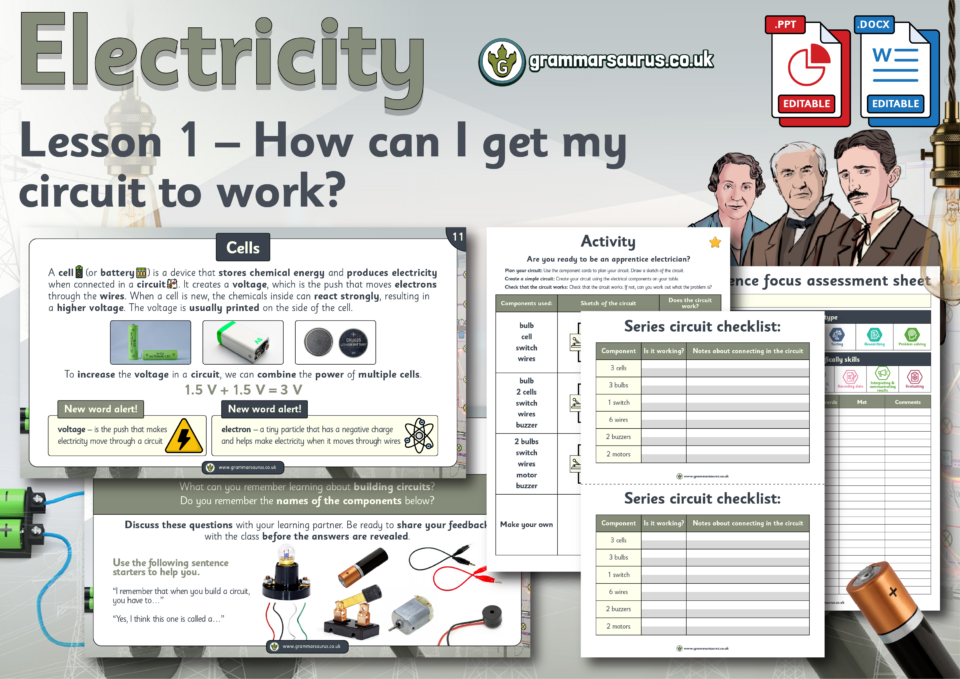 This editable differentiated lesson pack builds on children's understanding of electricity from year 4. They will learn how components work