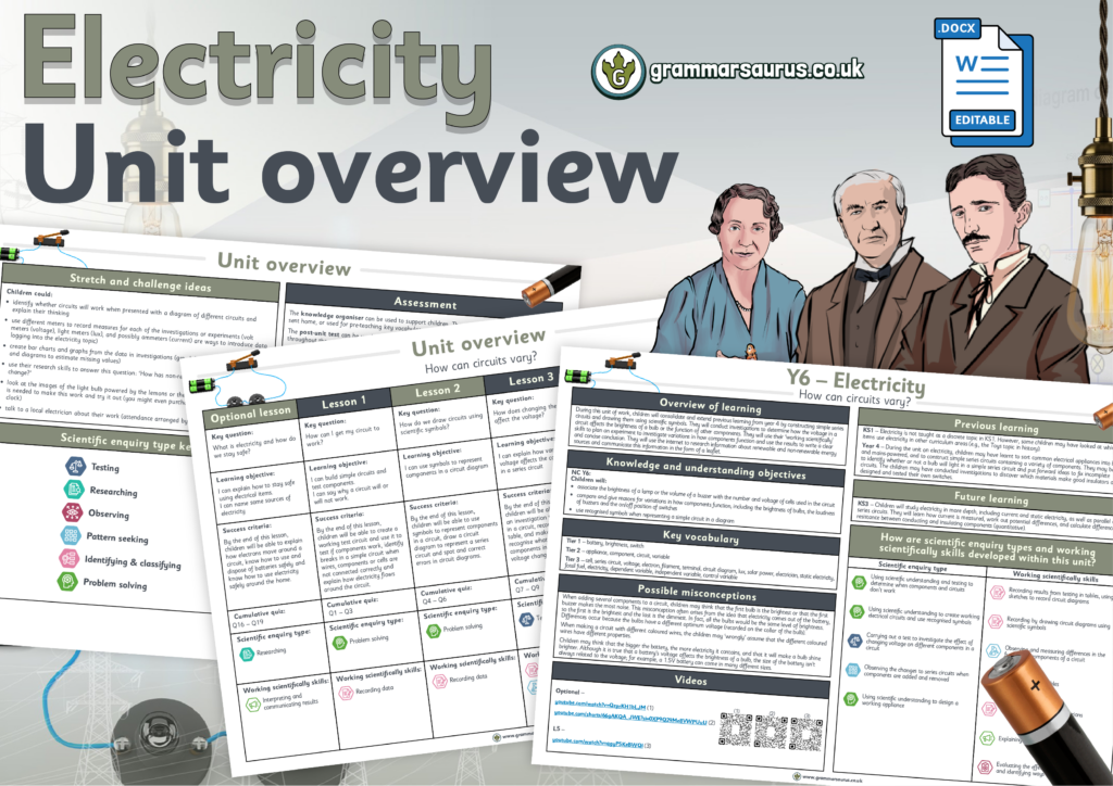 This editable unit overview offers a medium-term plan for Year 6's ‘Electricity’ topic. The file includes the following resources: –