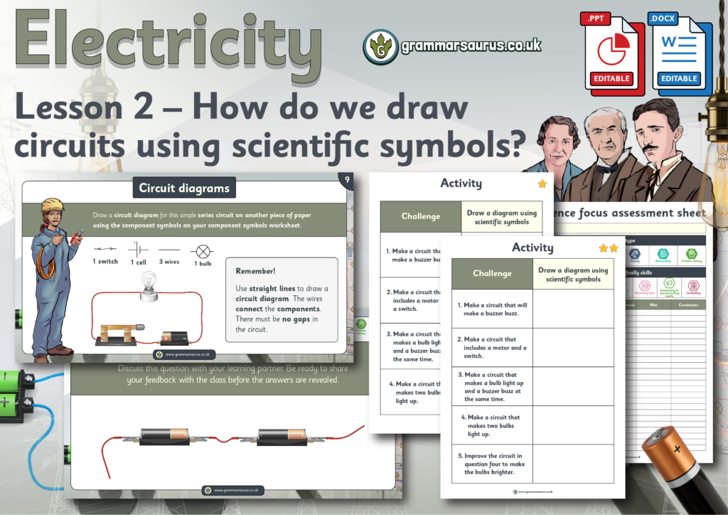 This editable differentiated lesson pack focuses on drawing circuit diagrams using recognised symbols. The file includes the following resources: -