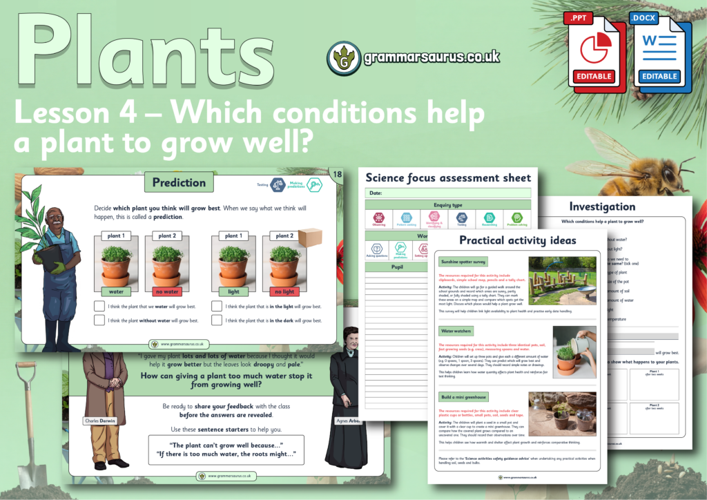 This editable differentiated lesson pack focuses on the conditions that plants need to grow well. These are tested using a simple